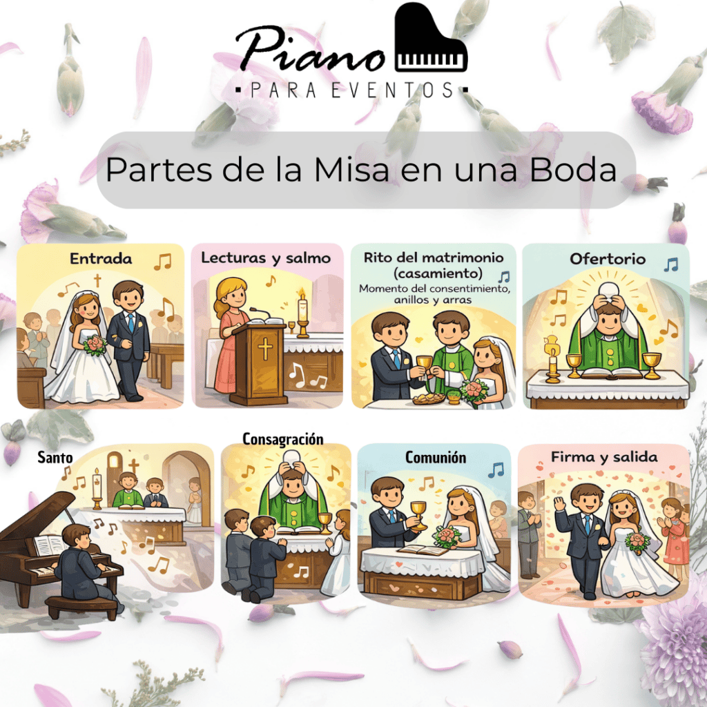 Si estás organizando una boda religiosa o cualquier ceremonia eucarística, esta guía te ayudará a estructurar el repertorio de forma adecuada.